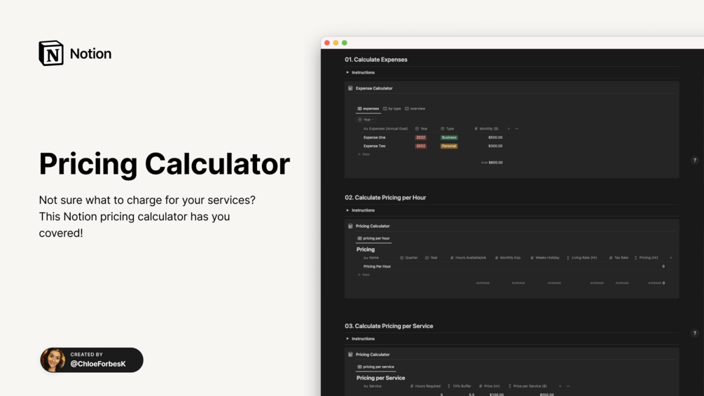 The template itself includes 3 databases. By the end, you will have a clear pricing strategy that accounts for holidays, expenses and helps you avoid burnout.
